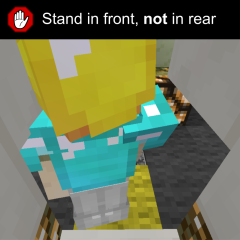 MINERVA should assume the launch position, as practiced. The astronaut must stand on the yellow carpet, use the [crouch] key, and move as close to the TNT Reactor Pool as possible. The astronaut must remain away from the walls of the spacecraft and stay on the yellow carpet only. See the reference photos below.